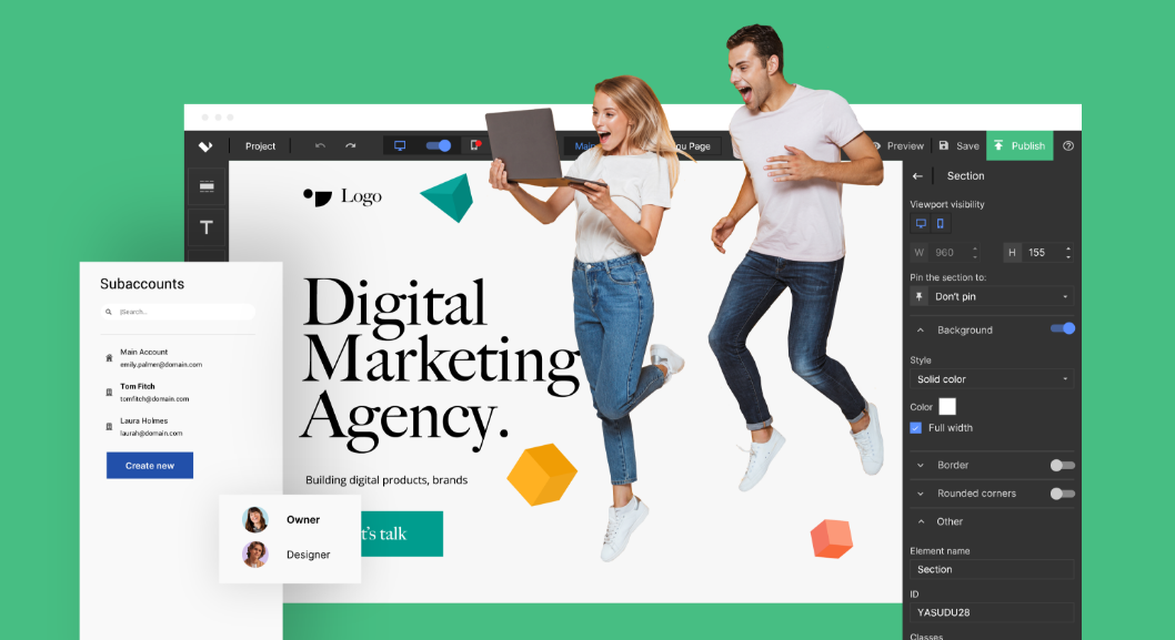 Wybierz kreator landing page'y dostosowany do potrzeb Twojej agencji.