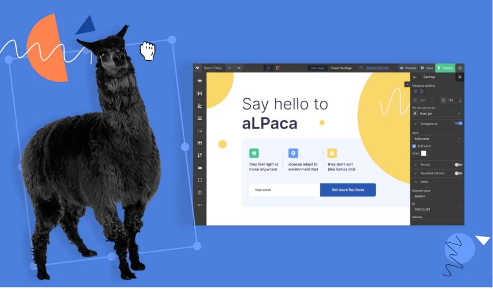Dzięki prostemu w obsłudze edytorowi drag & drop będziesz tworzyć landing page'e szybciej niż kiedykolwiek.