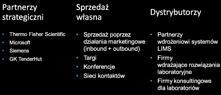Główny partner biznesowy Solution4Labs i Holo4Labs, notowany na NASDAQ Thermo Fisher Scientific, wdrożył swoje oprogramowanie LIMS w około 2000 firmach na całym świecie (26% obecnych wdrożeń takich systemów – jest to lider tej branży). Thermo Fisher Scientific aktywnie sprzedaje Holo4Labs i rekomenduje rozwiązanie zarówno do obecnych, jak i przyszłych klientów.