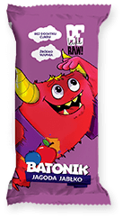 BeRAW kids Baton Jagoda Jabłko to pyszna owocowa przekąska, na bazie składników naturalnych, stworzona z myślą o dzieciach.