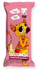 BeRAW kids Baton Truskawka Banan to pyszna owocowa przekąska, na bazie składników naturalnych, stworzona z myślą o dzieciach.