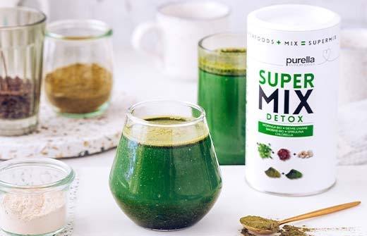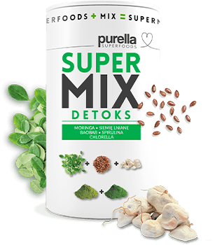 Supermix Detoks suplement diety jest połączeniem SUPERFOODS, które pomogą Ci w oczyszczaniu organizmu. Mieszanka została tak skomponowana, by zapewnić synergię działania zielonych składników: chlorelli, moringi i spiruliny. Uzupełniającą rolę pełni tutaj baobab oraz bogate w błonnik nasiona siemienia lnianego, które wspierają perystaltykę jelit.