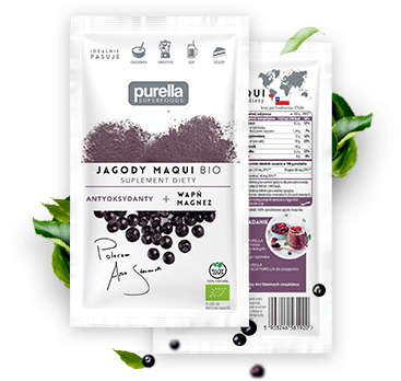 Jagody Maqui to małe, okrągłe owoce. Ty dostajesz je w formie fioletowego proszku.