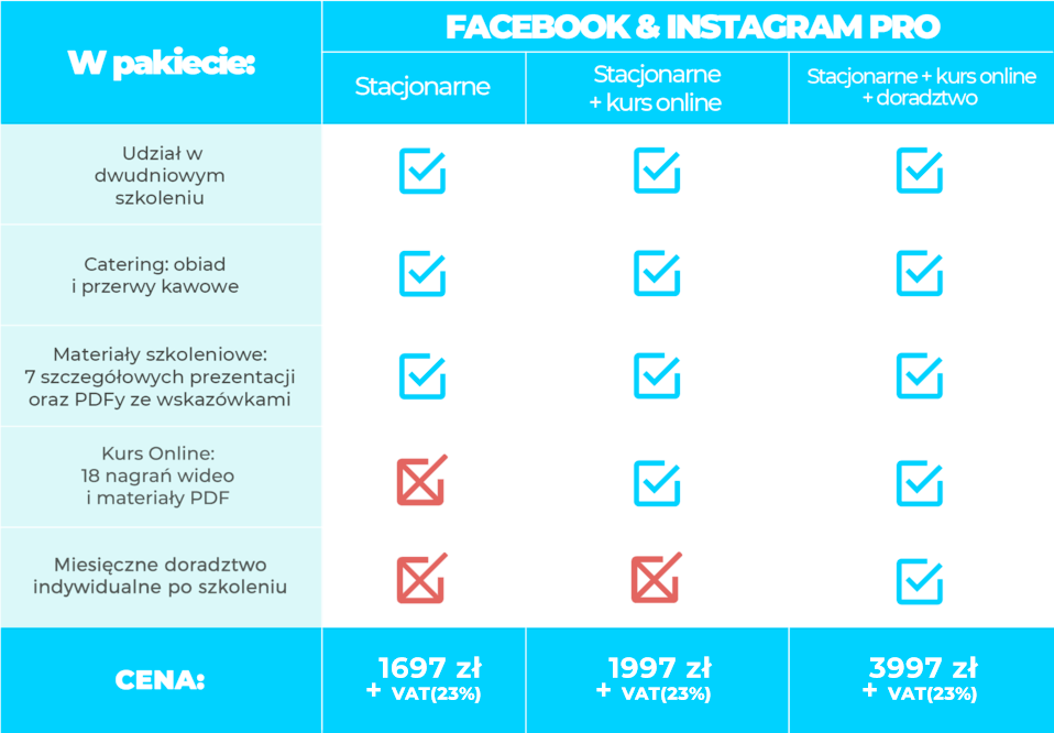 Szkolenie dwudniowe stacjonarne + kurs online FB PRO