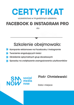 To jedyne szkolenie w Polsce, gdzie prowadzący posiada oba aż trzy oficjalne certyfikaty wydawane przez FB (m.in. "Facebook Certified Planning Professional" i "Buying Professional").