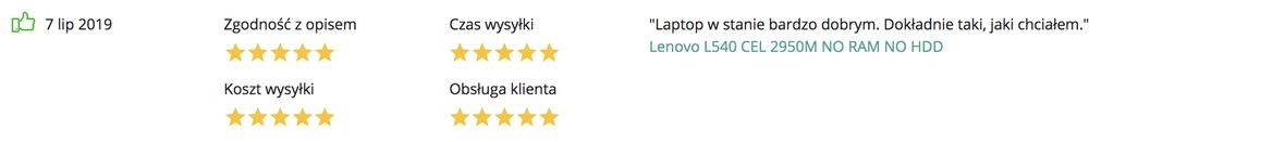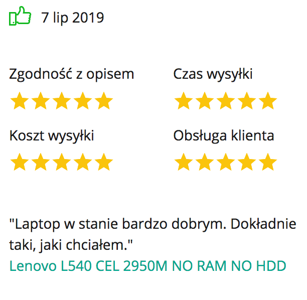 Oferowane laptopy są posortowane. Wysyłamy w pierwszej kolejności najlepsze egzemplarze. Tym samym - im szybciej się zdecydujesz, tym lepszą sztukę otrzymasz!